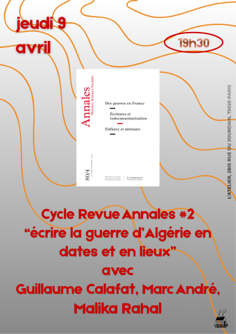 Lire la suiteCycles Revue Annales #2 "Ecrire la guerre d'Algérie : en dates et en lieux" avec Marc André et Malika Rahal accompagnés de Guillaume Calafat,