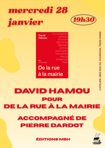 Lire la suiteRencontre avec David Hamou pour De la rue à la mairie, sociologie du municipalisme à Barcelone [éd. MSH], accompagné de Pierre Dardot