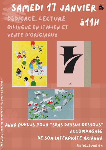 Lire la suite"Sens dessus dessous" Lecture bilingue italien, dédicace et vente d'originaux