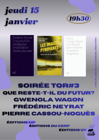Lire la suiteCycle Temps Qui Restent #3 : Que reste-t-il du futur ? avec Frederic Neyrat, Pierre Cassou-Noguès et Gwenola Wagon