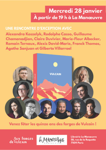 Lire la suitePour fêter la parution de notre recueil de nouvelles collectif « Vulcain », rendez-vous le mercredi 28 janvier à partir de 19h à la librairie La Manœuvre !Une rencontre exceptionnelle avec l’équipe des forges et dix des auteurices du recueil : Claire Duvivier, Guillau...