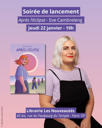 Lire la suiteJEUDI 22 JANVIER, 19h-21H: RENCONTRE APRÈS L'ECLIPSE, Eve CAMBRELENG, éd. La Ville BrûleIllustratrice de Nos Mutineries et d'A corps et à cris, Après l'éclipse est le premier roman graphique de fictione d'Eve Cambreleng. D'amitiés, de lutte, d'impuissance, de rage fémi...