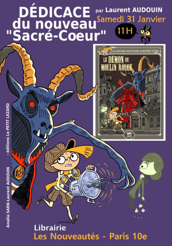 SAMEDI 31 JANVIER, 11h-13H: DEDICACE LES AVENTURES FANTASTIQUES DE SACRE COEUR, t.17: Le Démon du Moulin Rouge, Laurent AUDOUIN et Amélie SAM, éd. Petit LézardD'où vient l'affreuse odeur d'oeuf pourri qui se répand dans l'escalier du 28, rue du chemin vert ? Qui est cet...
