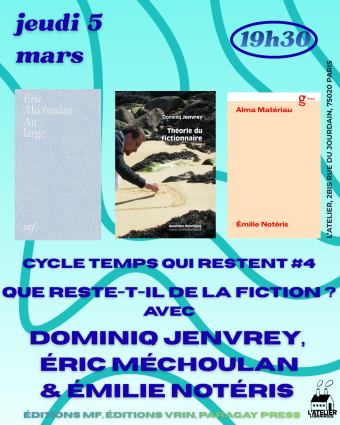 Lire la suiteCycle Temps qui restent #4 : "que reste-t-il de la fiction ?" avec Dominiq Jenvrey, Eric Méchoulan, Emilie Notéris