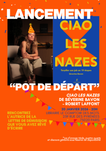 Pour la sortie de "Ciao les nazes !”, une lettre de démission de 250 pages, Le Comptoir des Mots se transforme en zone de non-droit corporate le 20 janvier à 20h.Au programme de ce pot de départ : Discours gênants : des keynotes disruptifs à fort impact pour challen...