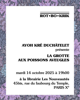 MARDI 14 OCTOBRE, 19h-21H: RENCONTRE LA GROTTE AUX POISSON AVEUGLES, Ayoh Kré DUCHÂTELET, éd. Rot-Bo-Krik