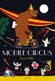 Dans cet album quasi muet mais très animé, l’enfant assiste avec jubilation au déroulement de plusieurs numéros colorés : équilibristes, jon- gleurs, motards mais aussi singes, clowns et dompteur de bêtes féroces ! Après le salut final, vite, il faut tout démonter car la pluie se met à tomber…