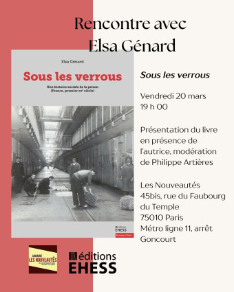 Lire la suiteVENDREDI 20 MARS, 19h-21H: LANCEMENT SOUS LES VERROUS: Une Histoire sociale de la prison ( France, premier XXème siècle), Elsa GENARD, éd. EHESSEntre les années 1910 et la fin des années 1930, des dizaines de milliers d’hommes et de femmes ont connu l’enfermement dans...
